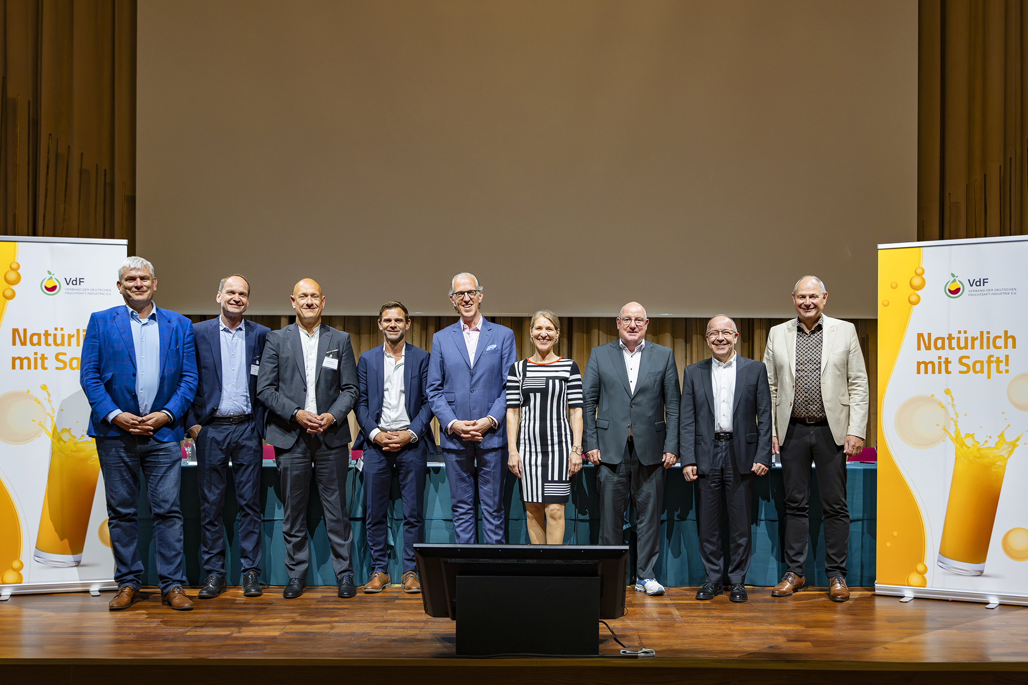 Bonn, 10. Juni 2025 - Auf der diesjährigen Mitgliederversammlung des VdF in Baden-Baden wurde das Präsidium neu gewählt. Präsident ist Heinrich Reuss, Eckes-Granini, 1. Stellvertreter ist Jakob Wagner von Niederrheingold und 2. Stellvertreter ist Guido Kühne, Refresco. Neu im Präsidium ist Dr. Peter van Nahmen von der gleichnamigen Obstkelterei.